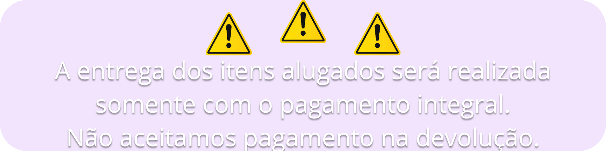 - O Pagamento Integral deverá ser realizado até a data da retirada.